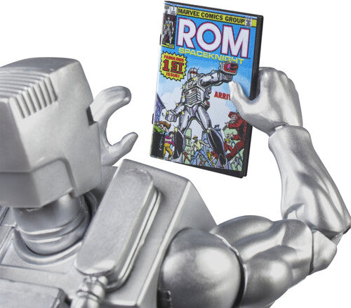 SCALE COMIC ACCESSORY: The figure comes with a 6-inch scale plastic comic book accessory featuring the cover of Rom: Spaceknight #1 (1979) the issue that inspired its deco