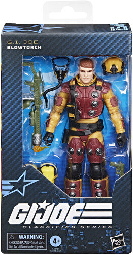 New to the G.I. Joe Classified Series line, Blowtorch comes ready for adventure, with multiple points of articulation for high poseability. This Blowtorch figure contains 10 character-inspired accessory pieces including breathing mask with air hose; helmet; fuel tank backpack; connector hose; flamethrower; spark, jet, and fireball flame effects; and a weapon accessory.